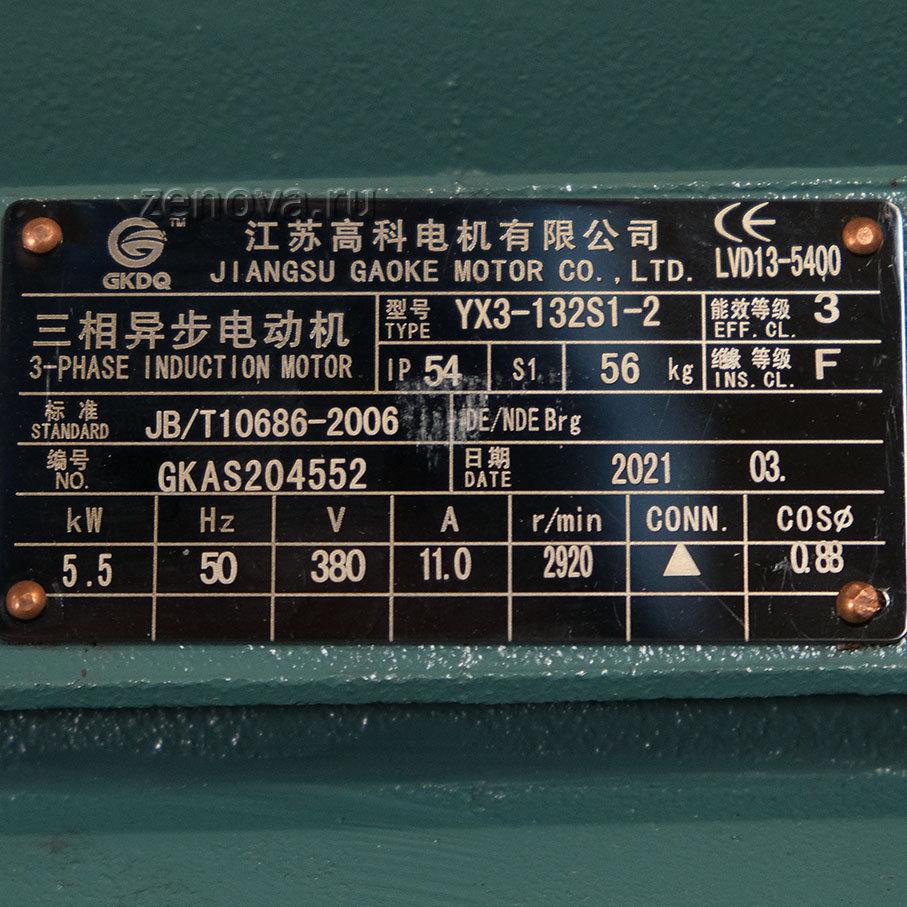 Мощность двигателя 5,5 кВт, 2980 об/мин (2Р), стандартное питание 380 В.