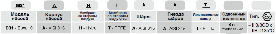 BOXER 81-A - это условное название модели, полный артикул насоса IB81-A-HTAAT--, он содержит информацию о материалах элементов конструкции.