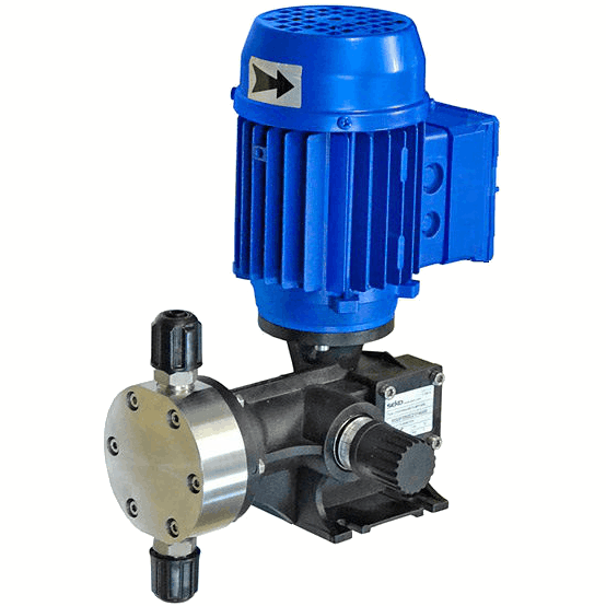 Мембранный дозирующий насос с электродвигателем Seko Spring MS0F050A21 предназначен для дозирования жидких химических веществ малой и средней вязкости. Корпус насоса выполнен из пластика, дозирующая головка (проточная часть) из нержавеющей стали (AISI 316), мембрана из PTFE (Ø 50 мм). Производительность насоса регулируется вручную при помощи микрометрического винта, который управляет длиной хода мембраны. Регулировка производительности может осуществляться во время работы насоса, рекомендуемый диапазон регулировки от 30 до 100 % от максимальной производительности.