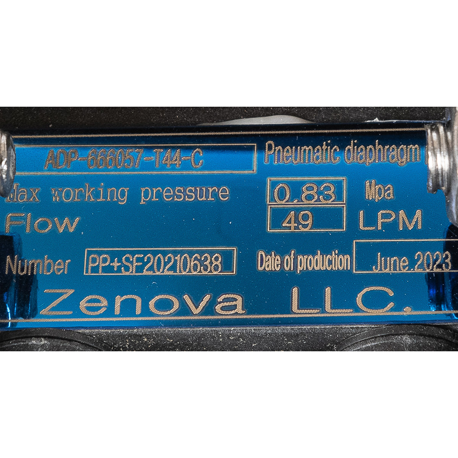 Мембранный пневматический насос Vetlan Pneumatic ADP-666057-T44-C перекачивает в режиме самовсасывания жидкости и вязкие среды разнообразной химической структуры, в том числе с твердыми фракциями до 2,4 мм. Для работы насоса необходима подача сжатого воздуха с давлением до 6,9 бар.