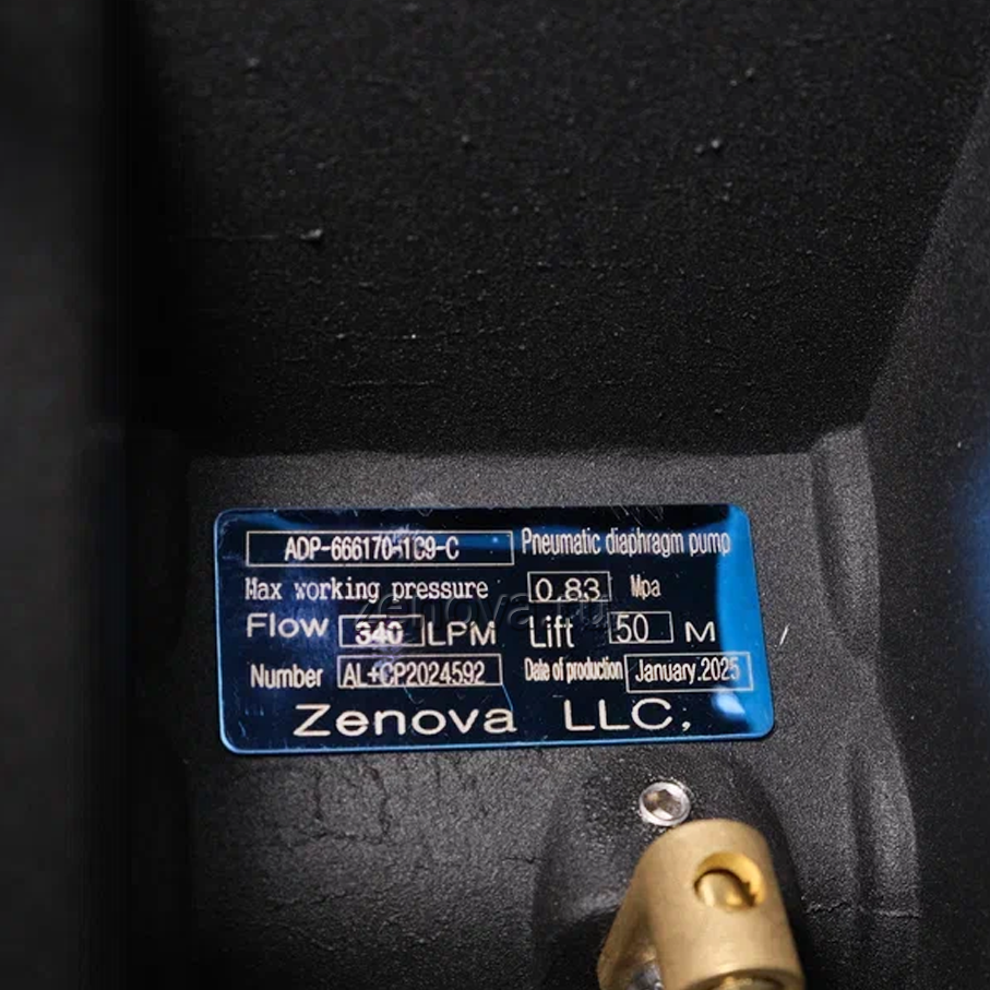 Мембранный пневматический насос Vetlan Pneumatic ADP-666170-3C9-C перекачивает в режиме самовсасывания жидкости и вязкие среды разнообразной химической структуры, в том числе с твердыми фракциями до 6,4 мм. Для работы насоса необходима подача сжатого воздуха с давлением до 8,3 бар.
