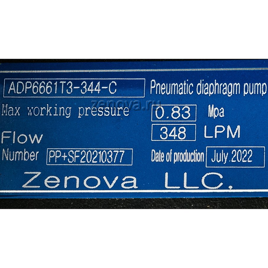 Мембранный пневматический насос Vetlan Pneumatic ADP-6661T3-344-C перекачивает в режиме самовсасывания жидкости и вязкие среды разнообразной химической структуры, в том числе с твердыми фракциями до 6,4 мм. Для работы насоса необходима подача сжатого воздуха с давлением до 8,3 бар.