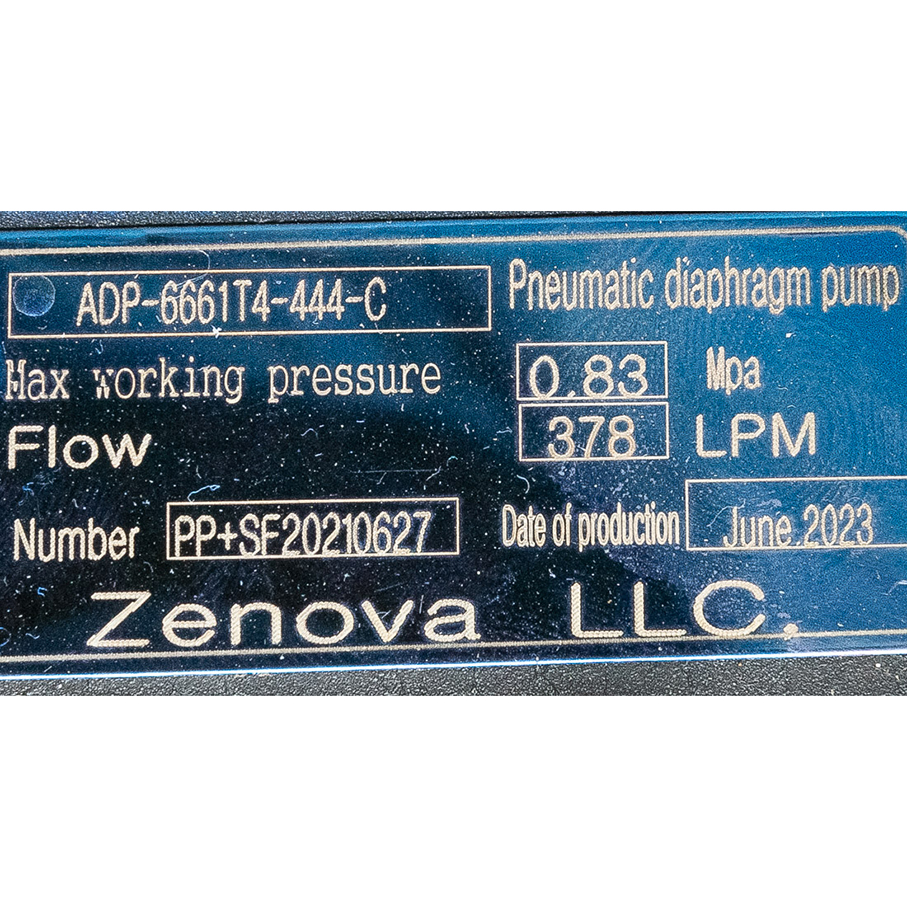 Мембранный пневматический насос Vetlan Pneumatic ADP-6661T4-444-C перекачивает в режиме самовсасывания жидкости и вязкие среды разнообразной химической структуры, в том числе с твердыми фракциями до 6,4 мм. Для работы насоса необходима подача сжатого воздуха с давлением до 8,3 бар.