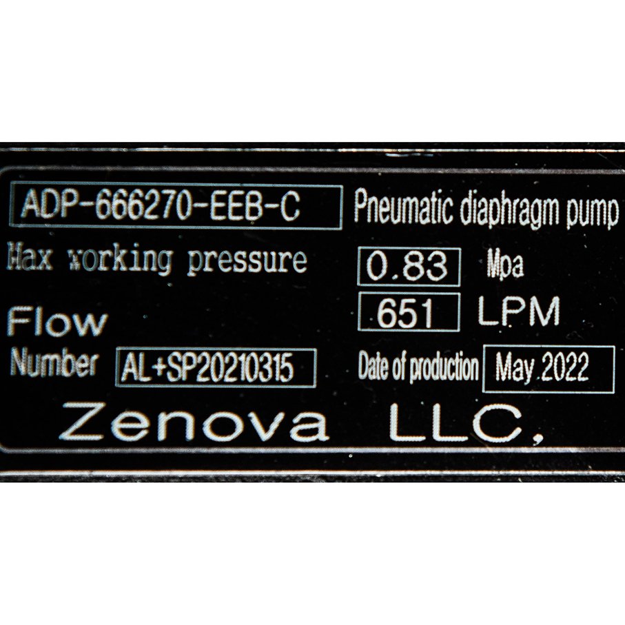 Мембранный пневматический насос Vetlan Pneumatic ADP-666270-EEB-C перекачивает в режиме самовсасывания жидкости и вязкие среды разнообразной химической структуры, в том числе с твердыми фракциями до 6,4 мм. Для работы насоса необходима подача сжатого воздуха с давлением до 8,3 бар.