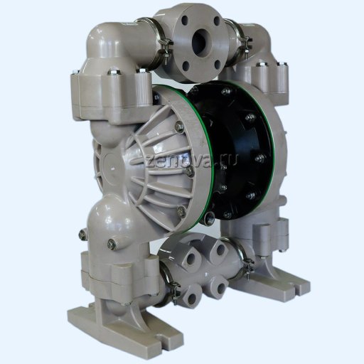 - Мембраны со стороны жидкости - из PTFE (проточная часть), со стороны воздуха - из сантопрена (не влияет на химическую совместимость с перекачиваемой жидкостью)