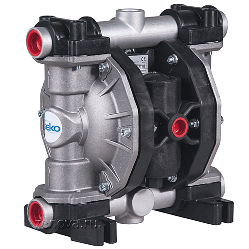 Насос оснащен двухсторонним пневмоклапаном, который регулирует как подачу воздуха в камеру с мембранами, так и выход воздуха из камеры. В итоге значительно снижаются пульсация перекачиваемой среды и расход воздуха.