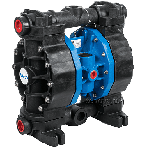 Насос оснащен двухсторонним пневмоклапаном, который регулирует как подачу воздуха в камеру с мембранами, так и выход воздуха из камеры. В итоге значительно снижаются пульсация перекачиваемой среды и расход воздуха.