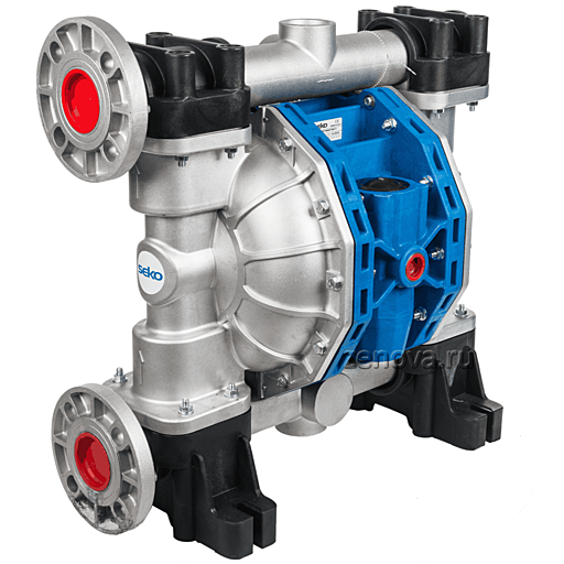 Насос оснащен двухсторонним пневмоклапаном, который регулирует как подачу воздуха в камеру с мембранами, так и выход воздуха из камеры. В итоге значительно снижаются пульсация перекачиваемой среды и расход воздуха.