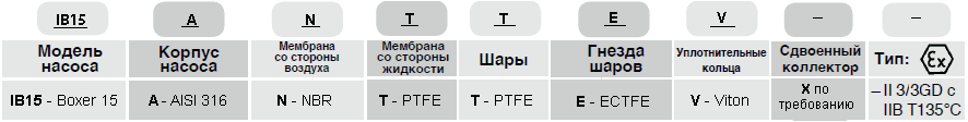 BOXER 15-A - это условное название модели, полный артикул насоса IB15-A-NTTEV--, он содержит информацию о материалах элементов конструкции.