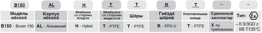 BOXER 150-AL - это условное название модели, полный артикул насоса IB150ALHTTRT--, он содержит информацию о материалах элементов конструкции.
