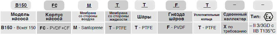 BOXER 150-F - это условное название модели, полный артикул насоса IB150FCMTTFT--, он содержит информацию о материалах элементов конструкции.