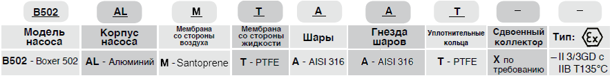 BOXER 502-AL - это условное название модели, полный артикул насоса IB502ALMTAATI-, он содержит информацию о материалах элементов конструкции.