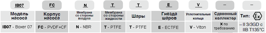 BOXER 7-F- это условное название модели, полный артикул насоса IB07-FCNTTEV--, он содержит информацию о материалах элементов конструкции.