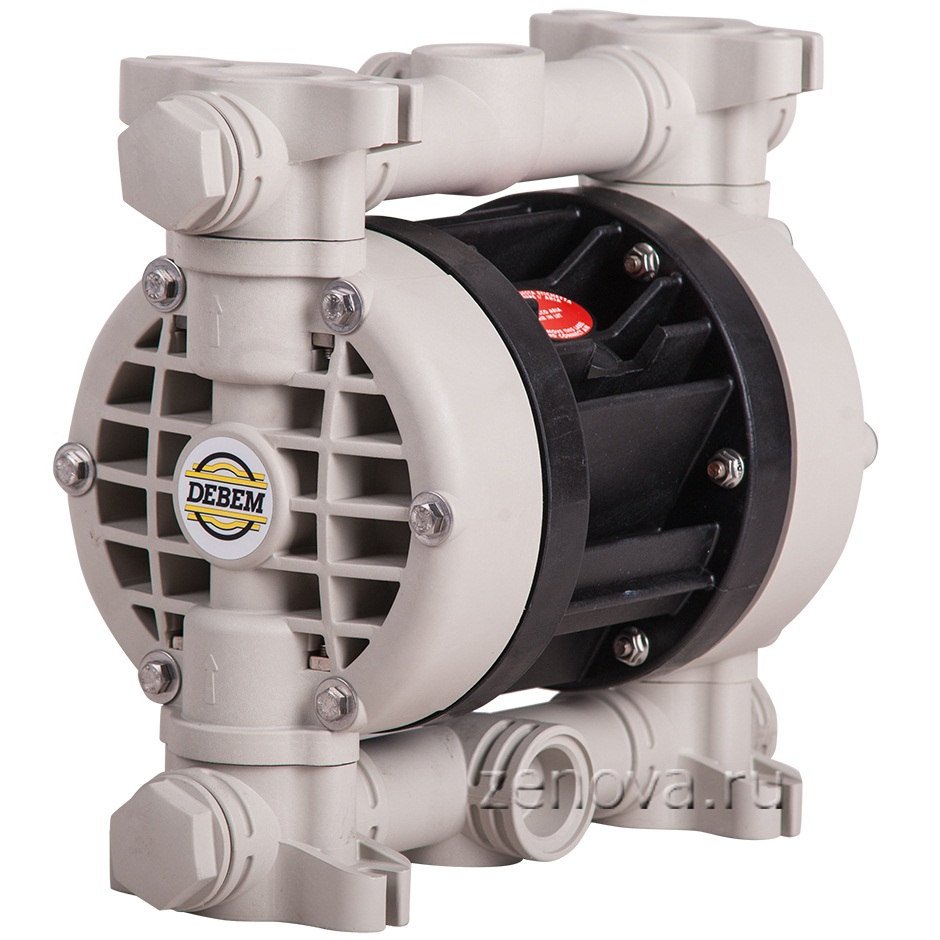 Мембранный пневматический насос BOXER 81-P из полипропилена итальянской фирмы Debem предназначен для перекачивания жидкостей, с которыми плохо справляются центробежные насосы. К ним относятся вязкие (до 25 000 сстокс), агрессивные, легковоспламеняющиеся жидкости с возможным содержанием твердых абразивных частиц. Насос BOXER 81-P при работе использует энергию сжатого воздуха от 2 до 8 бар (в паре с насосом необходим компрессор).