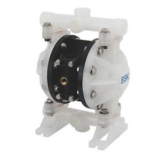 Мембранный пневматический насос BP15PP-PTT4-B перекачивает в режиме самовсасывания жидкости и вязкие среды разнообразной химической структуры, в том числе с твердыми фракциями до 2,5 мм. Для работы насоса необходима подача сжатого воздуха с давлением до 6,9 бар.