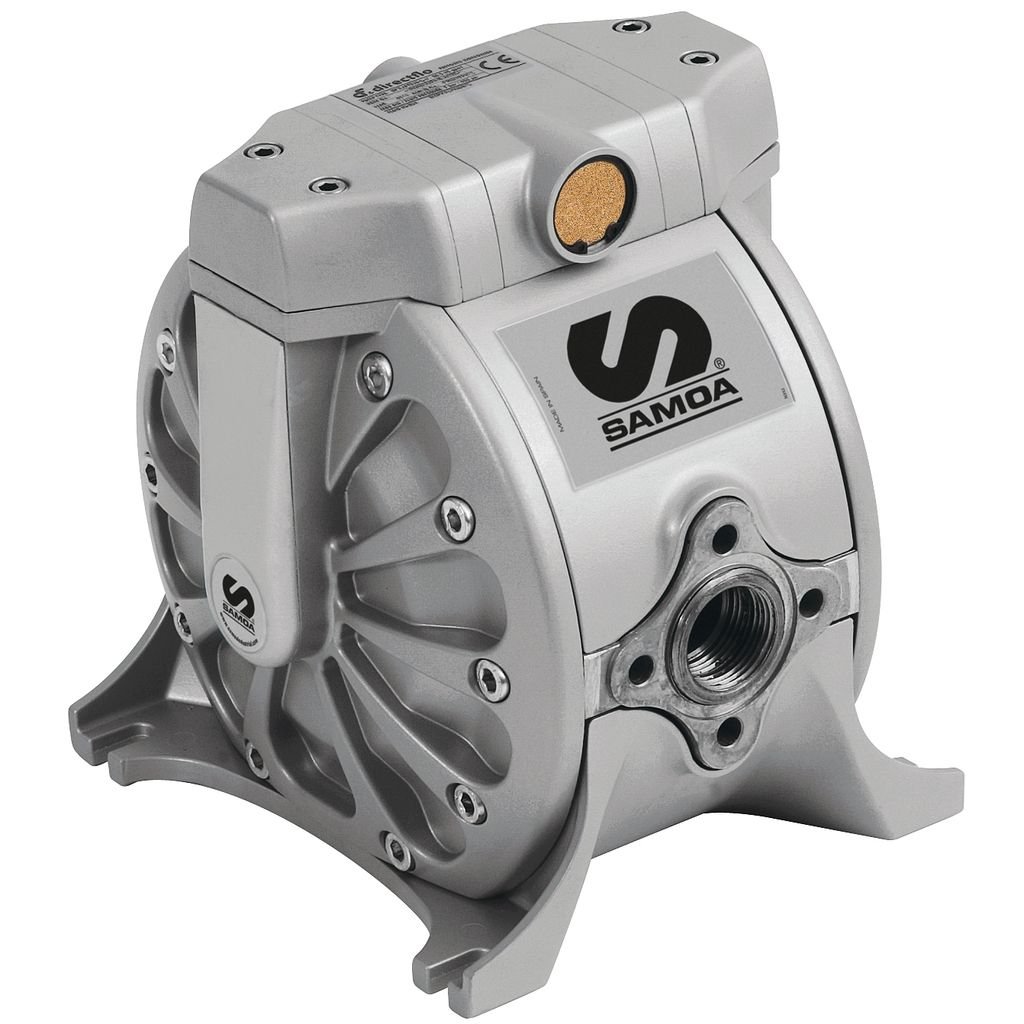 Мембранный пневматический насос DF100_AA от испанской компании Samoa обладает уникальными свойствами, недоступными аналогичным насосам других производителей. Он требует меньшей мощности компрессора, не боится закрытия задвижек на напорной линии, дает на 80% меньше пульсаций по сравнению с обычными мембранными насосами. При его использовании в большинстве случаев нет необходимости применения демпфера пульсаций.