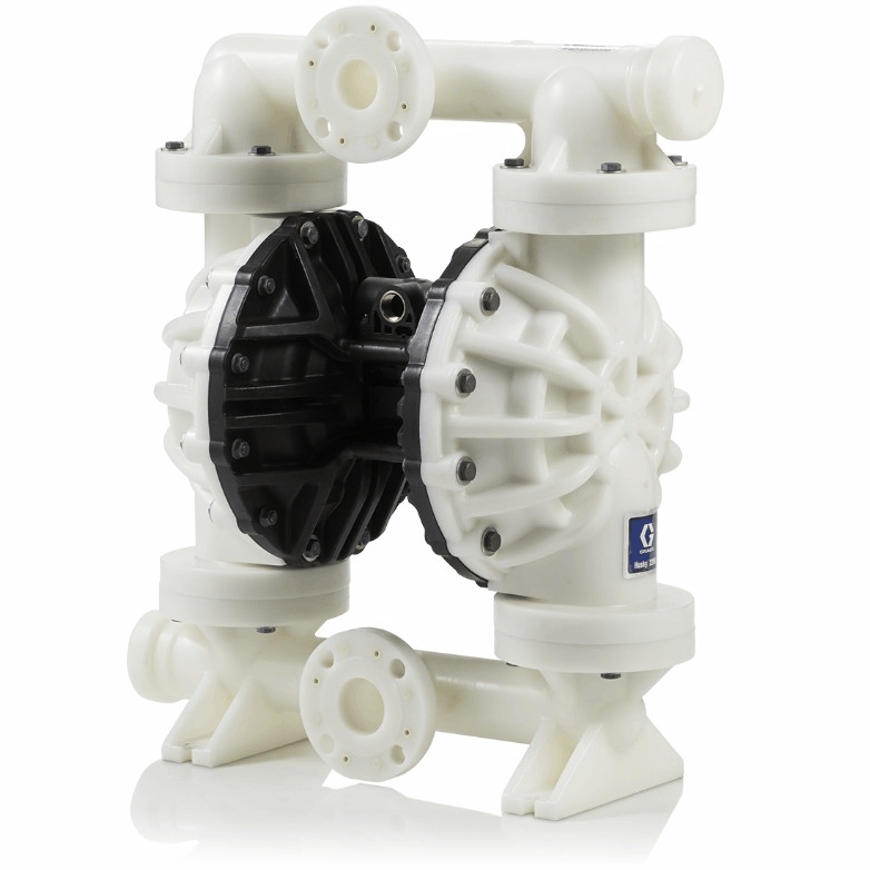 Мембранный пневматический насос Graco HUSKY 2200P-P01-A-P1-PP-SP-SP-PT (заводской артикул 653500) имеет корпус из полипропилена, мембраны из Сантопрена (Santoprene), шариковые клапаны тоже из сантопрена, седла клапанов из полипропилена. Насос предназначен для перекачивания кислот и щелочей, грунтовок и красок, а также различных нейтральных сред, в том числе воды, антифризов, масел, моющих жидкостей. Работает от энергии сжатого воздуха, давление воздуха на входе в насос должно быть от 1,4 до 8,6 бар.
