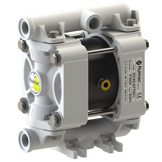Мембранный пневматический насос Fluimac P18_O обладает исключительной стойкостью к растворителям, но абсолютно несовместим с кислотами и щелочами. Насос служит для перекачивания большинства кетонов, ацетатов, альдегидов, хлорированных углеводородов ароматического ряда, толуола, ЛКМ на основе растворителей и разбавителей. Вязкость перекачиваемой жидкости до 12 000 cps, допустимое прохождение твердых включений до 3 мм.