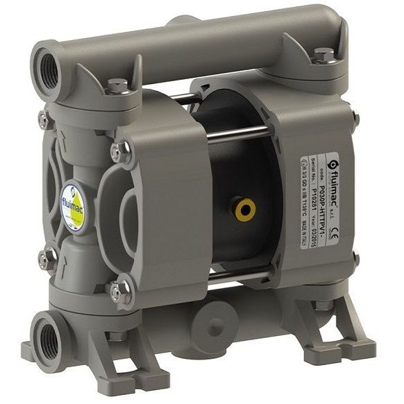 Мембранный пневматический насос Fluimac P30_P служит для перекачивания умеренно агрессивных жидкостей вязкостью до 15 000 cps. Насос допускает прохождение твердых включений до 3,5 мм.