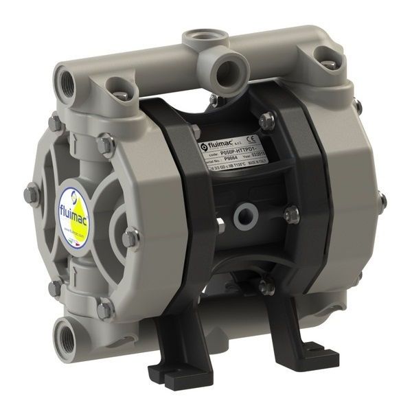 Мембранный пневматический насос Fluimac P50_P служит для перекачивания умеренно агрессивных жидкостей вязкостью до 20 000 cps. Насос допускает прохождение твердых включений до 3 мм.