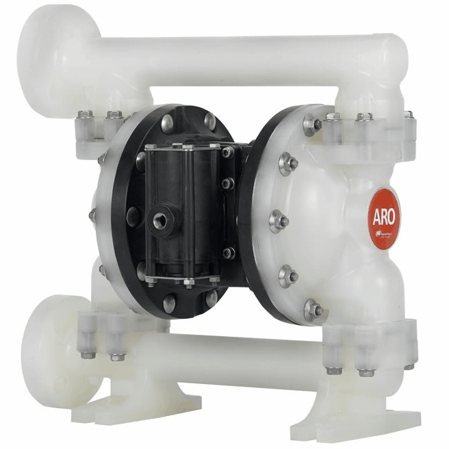 Мембранный пневматический насос ARO PD10P-BPS-PVV перекачивает в режиме самовсасывания жидкости и вязкие среды разнообразной химической структуры, в том числе с твердыми фракциями до 3,2 мм. Для работы насоса необходима подача сжатого воздуха с давлением от 2,8 до 8,3 бара.