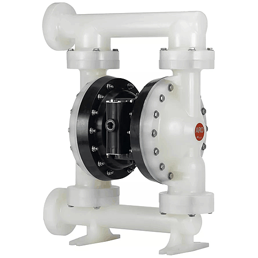 Мембранный пневматический насос ARO PD20P-FKS-KAA перекачивает в режиме самовсасывания жидкости и вязкие среды разнообразной химической структуры, в том числе с твердыми фракциями до 6,4 мм. Для работы насоса необходима подача сжатого воздуха с давлением от 2,8 до 8,3 бара.