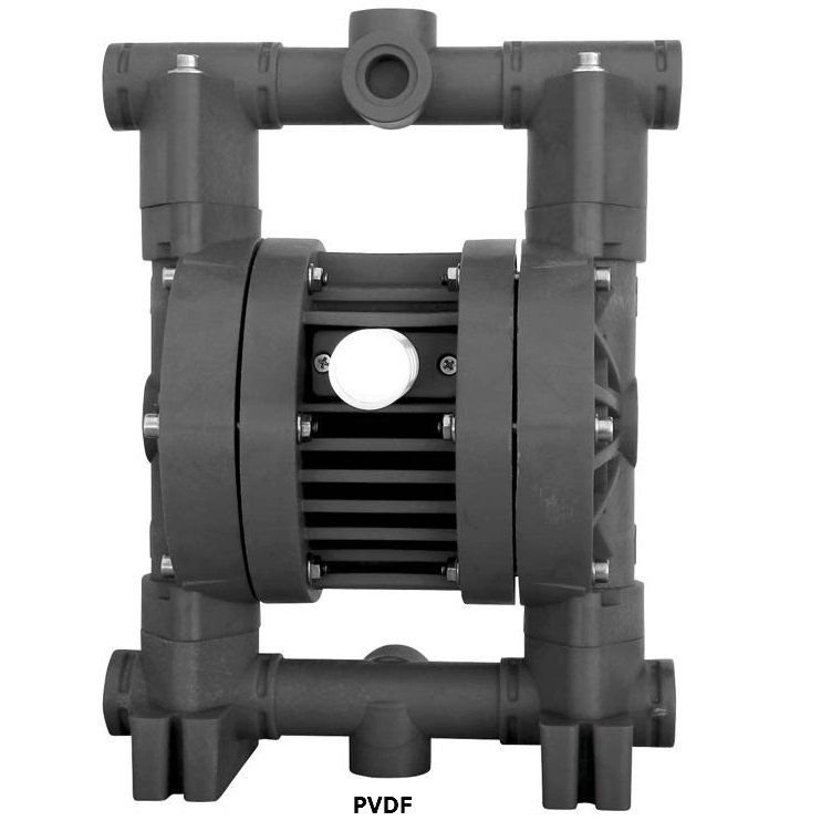 Мембраны из PTFE+EPDM (Тефлон + Этилен-пропиленовый каучук) с увеличенной амплитудой колебания мембраны. PTFE мембрана со стороны жидкости, подложка из кондуктивного EPDM со стороны пневмопривода. Мембраны не имеют сквозного отверстия, что исключает утечку жидкости и контакт с основной втулкой.