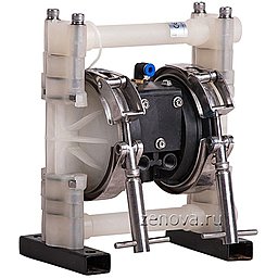 Конструкция пневмодвигателя позволяет перекачивать жидкость с пониженным потреблением воздуха. Более низкое энергопотребление косвенно подтверждается сравнительно низкими пульсациями в напорной линии, и тем фактом, что насос начинает работать уже при низком давлении (0,3-0,8 бара).