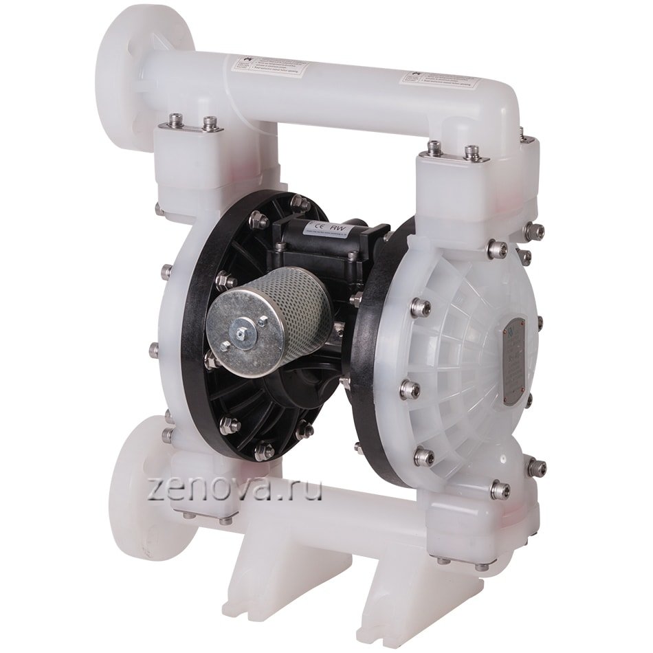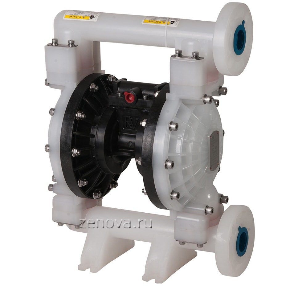Насос перекачивает жидкости различной химической активности, концентрации и вязкости. Допустимо содержание взвешенных твердых частиц до 5 мм. Давление воздуха на входе в насос должно быть от 0,8 до 8,4 бар.