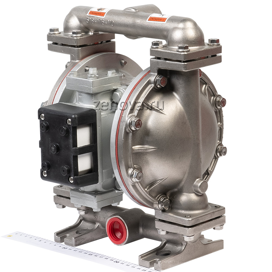 Мембранный пневматический насос Vetlan Pneumatic SDP-S1FB1S-GSABS000 перекачивает в режиме самовсасывания жидкости и вязкие среды разнообразной химической структуры, в том числе с твердыми фракциями до 6 мм. Для работы насоса необходима подача сжатого воздуха с давлением до 8,6 бар.