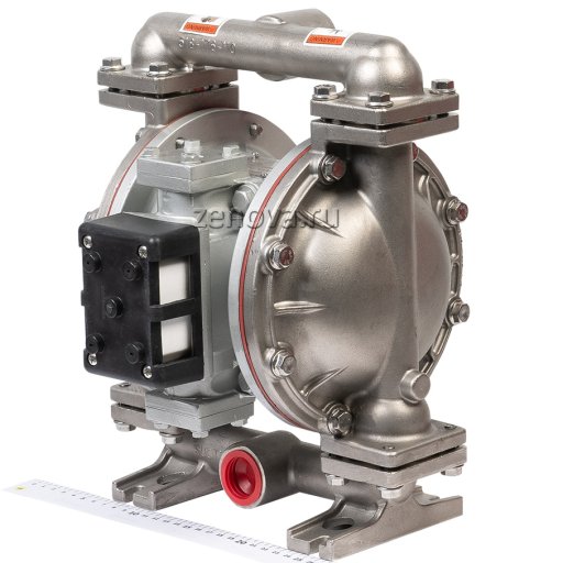 - Мембрана со стороны жидкости из PTFE (проточная часть), со стороны воздуха из неопрена (не влияет на химическую совместимость с перекачиваемой жидкостью)