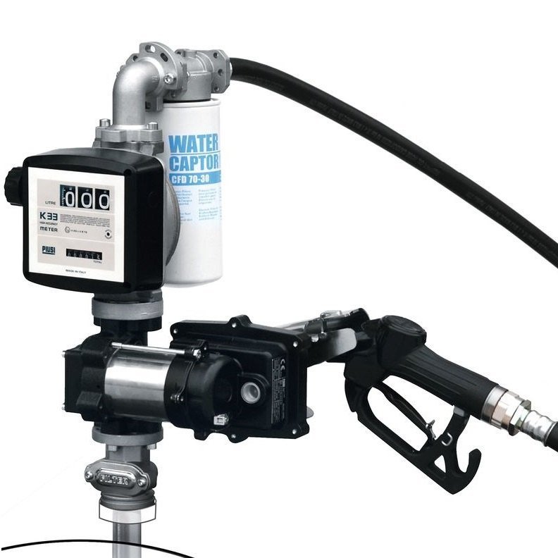 Это энергоэффективный, шиберный насос, способный подавать топливные жидкости со скоростью до 50 л/мин от источника питания 12 V. Насос дополняют механический счетчик, 2 ” коннектор крепления на бочку, раздаточный пистолет в комплекте с держателем, напорный 4-метровый шланг, телескопическая всасывающая труба 1100 мм, адсорбирующий фильтр для отделения воды и примесей.