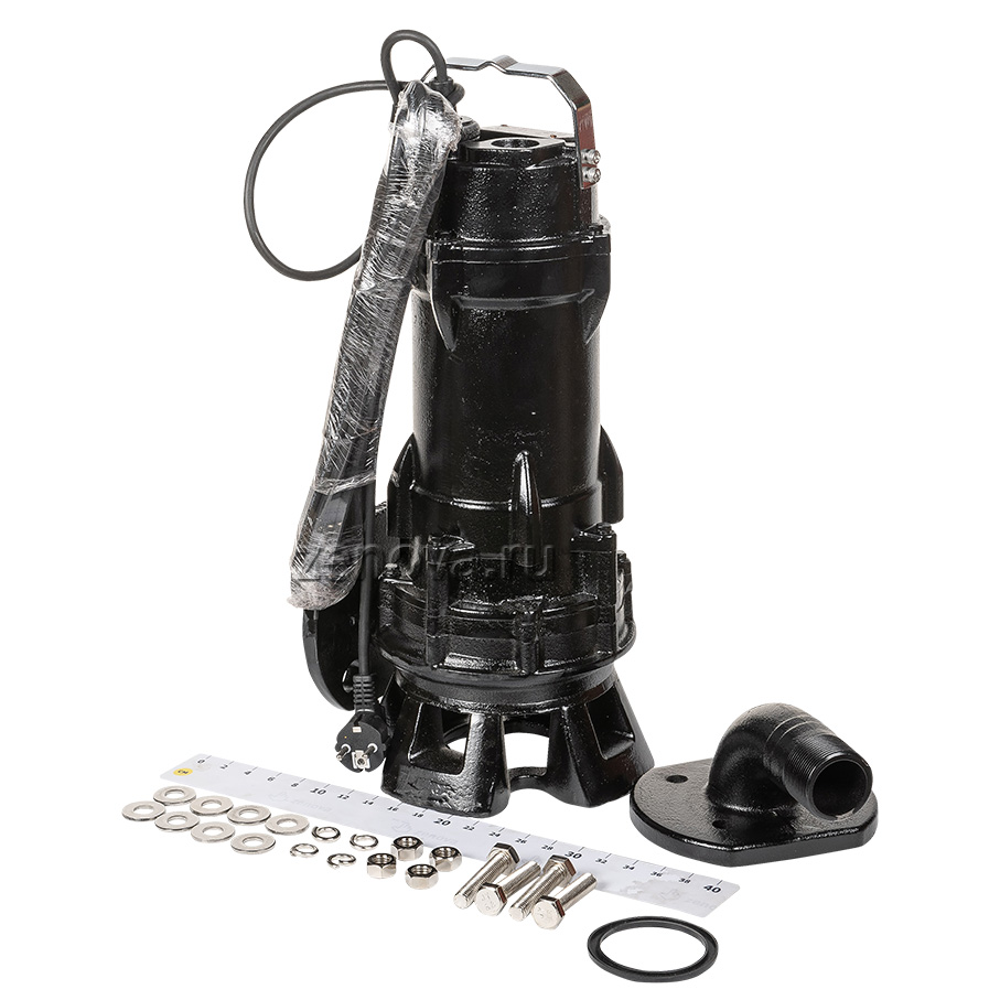 - Длина кабеля: 8 метров. Минимальный уровень откачиваемой жидкости должен быть на уровне половины корпуса электродвигателя