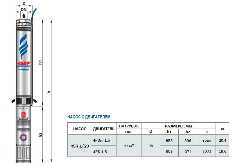Электродвигатели для скважинного насоса Pedrollo 4SR 1/29
