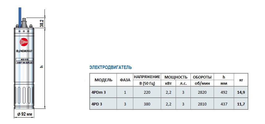 Электродвигатели для скважинного насоса Pedrollo 4SR 1,5/44