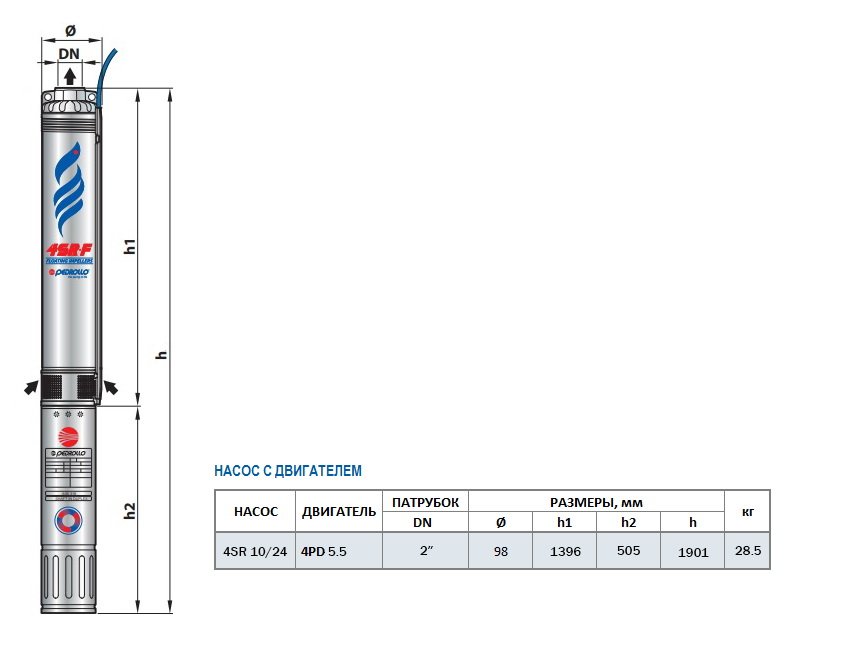 Скважинный насос Pedrollo 4SR 10/24 – это 4-дюймовый центробежный насос с 24-мя рабочими ступенями (колесами). Насос позволяет подавать грунтовую и артезианскую воду, допустимое содержание песка в составе воды до 150 г/м3. Насос используется для водоснабжения производственных, сельскохозяйственных, бытовых объектов.