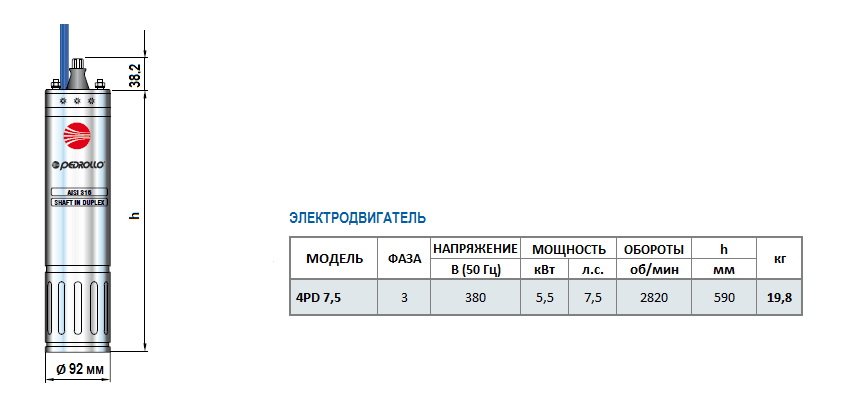 4PD 7,5 – 2820 об/мин (2P), трехфазная версия 380 В (50 Гц), мощность 5,5 кВт (7,5 л.с.)