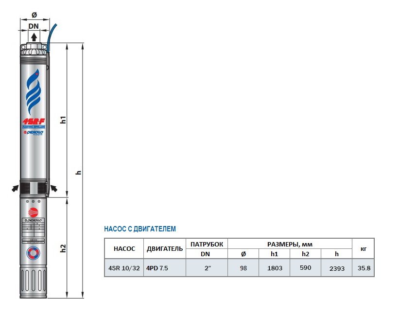 Габаритный чертеж насоса Pedrollo 4SR 10/32