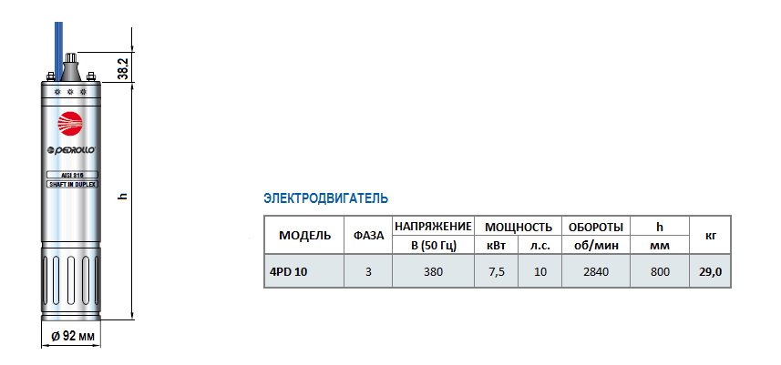 4PD 10 – 2840 об/мин (2P), трехфазная версия 380 В (50 Гц), мощность 7,5 кВт (10 л.с.)