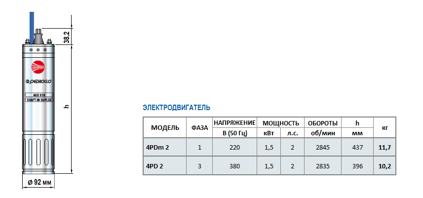Электродвигатели для скважинного насоса Pedrollo 4SR 10/11