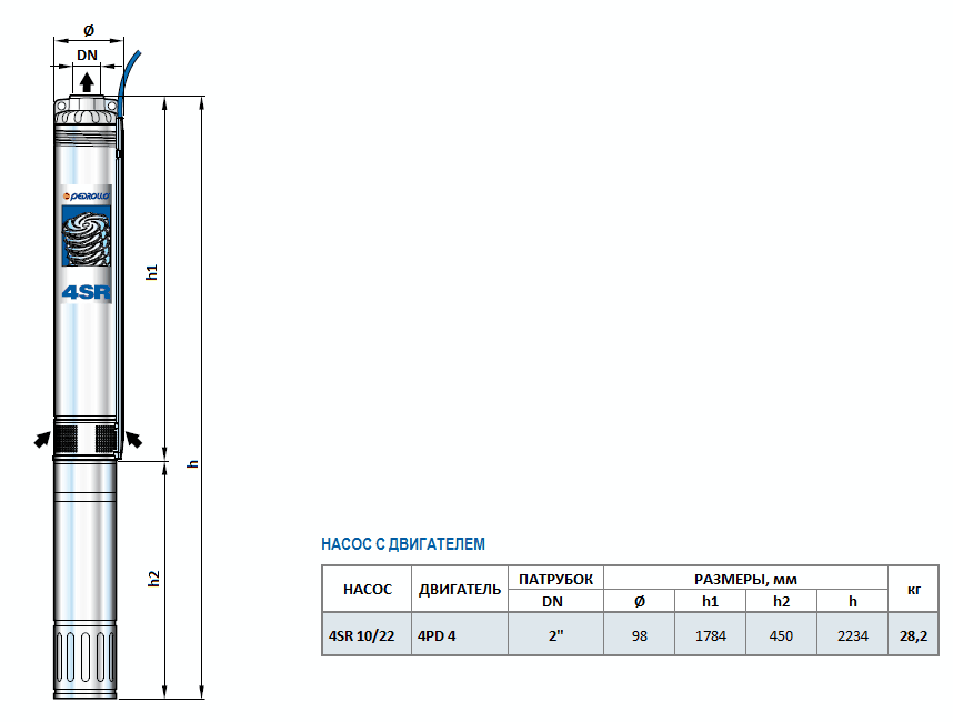 Габаритный чертеж насоса Pedrollo 4SR 10/22