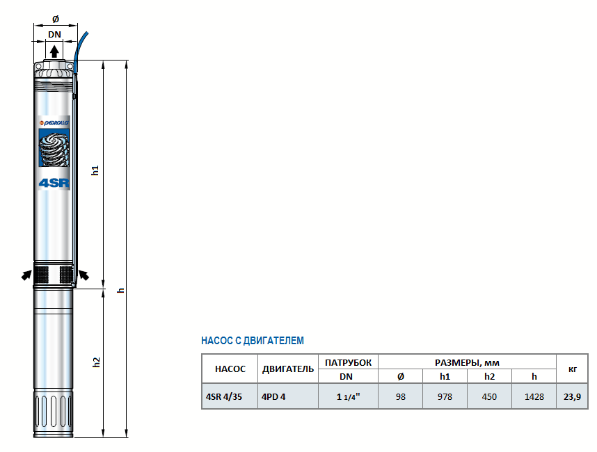 Габаритный чертеж насоса Pedrollo 4SR 4/35