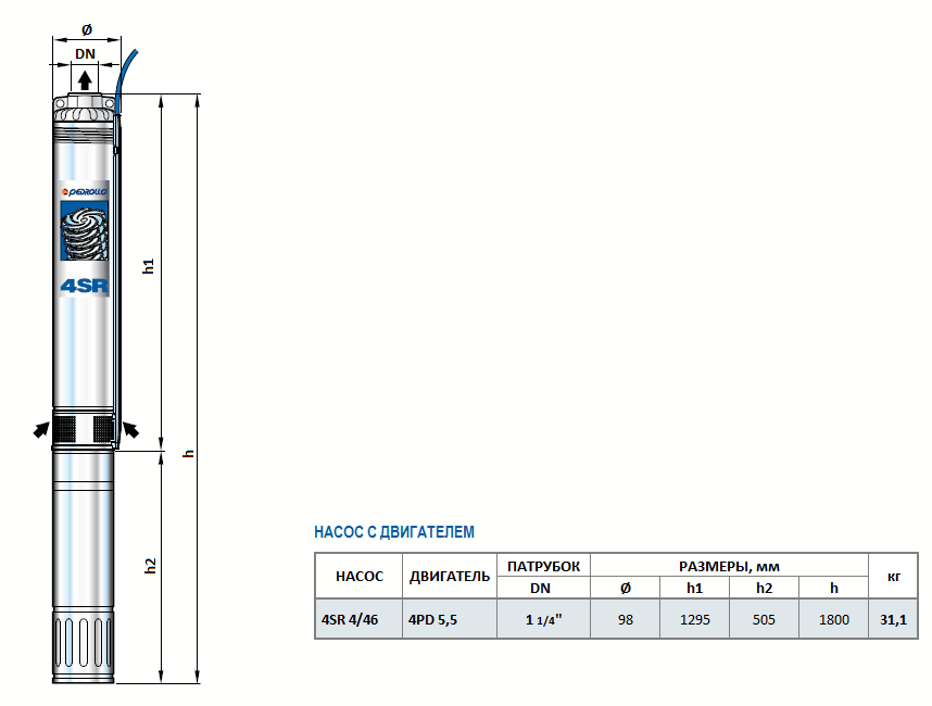 Скважинный насос Pedrollo 4SR 4/46 – это 4-дюймовый центробежный насос с 46-ю рабочими ступенями (колесами). Насос позволяет подавать грунтовую и артезианскую воду, допустимое содержание песка в составе воды до 150 г/м3. Насос используется для водоснабжения производственных, сельскохозяйственных, бытовых объектов.
