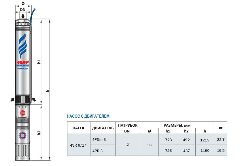 Габаритный чертеж насоса Pedrollo 4SR 6/17