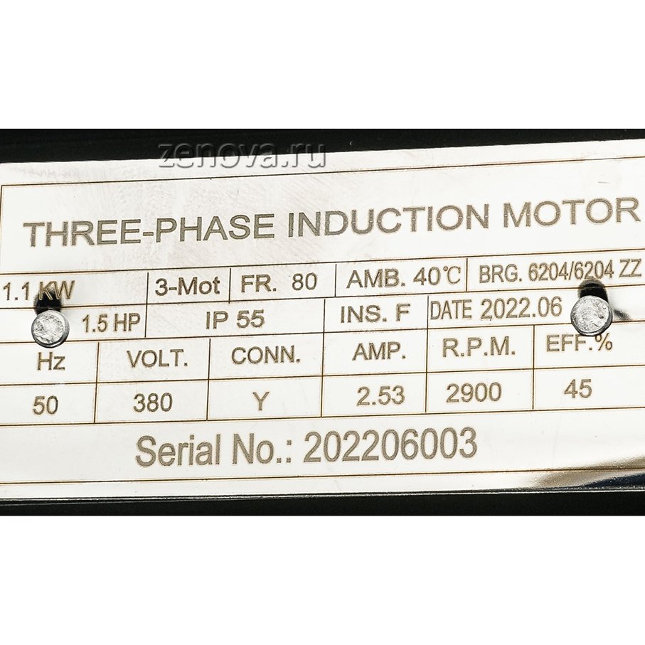 Насос оборудован трехфазным двигателем 380 В, 50 Гц, 2900 об/мин, номинальная мощность двигателя 1,1 кВт.