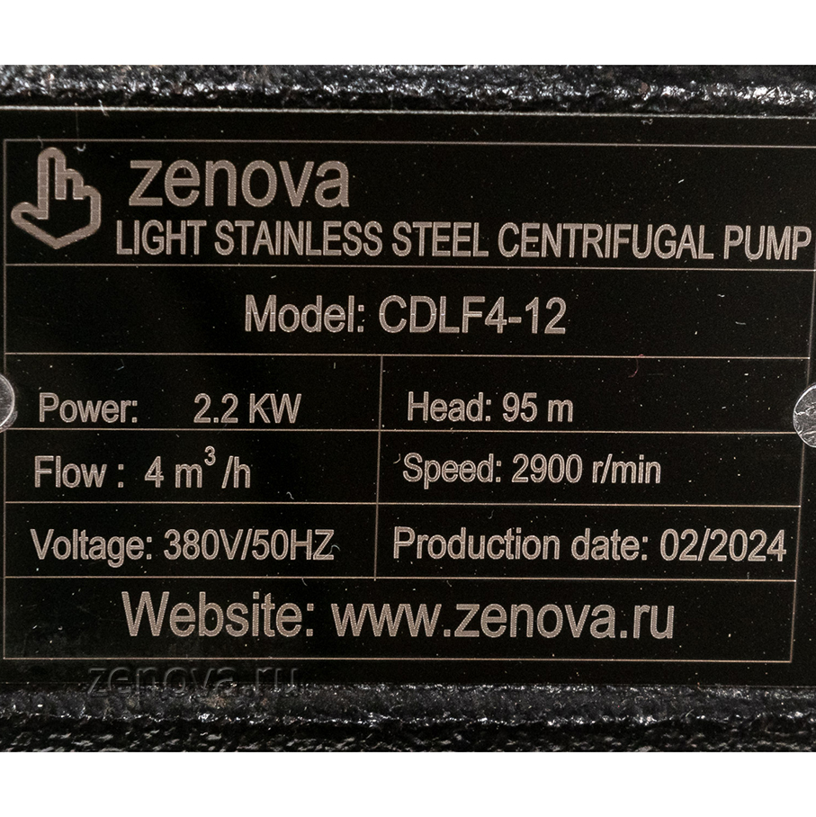 Насос Zenova CDLF 4-12 - вертикальный многоступенчатый насос высокого давления, который производится на современном заводе в Китае и продается в России под нашей собственной маркой Zenova. Насос имеет 12 рабочих ступеней. Патрубки насоса одинакового диаметра 32 мм, расположены на одной линии. Голова насоса выполнена из чугуна, внутренние части, контактирующие с водой, изготовлены из нержавеющей стали AISI 304. Модель предназначена для перекачивания чистой жидкости без твердых частиц, подходящей для нержавеющей стали.