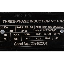 Насос оборудован трехфазным двигателем 380 В, 50 Гц, 2900 об/мин, номинальная мощность двигателя 2,2 кВт.