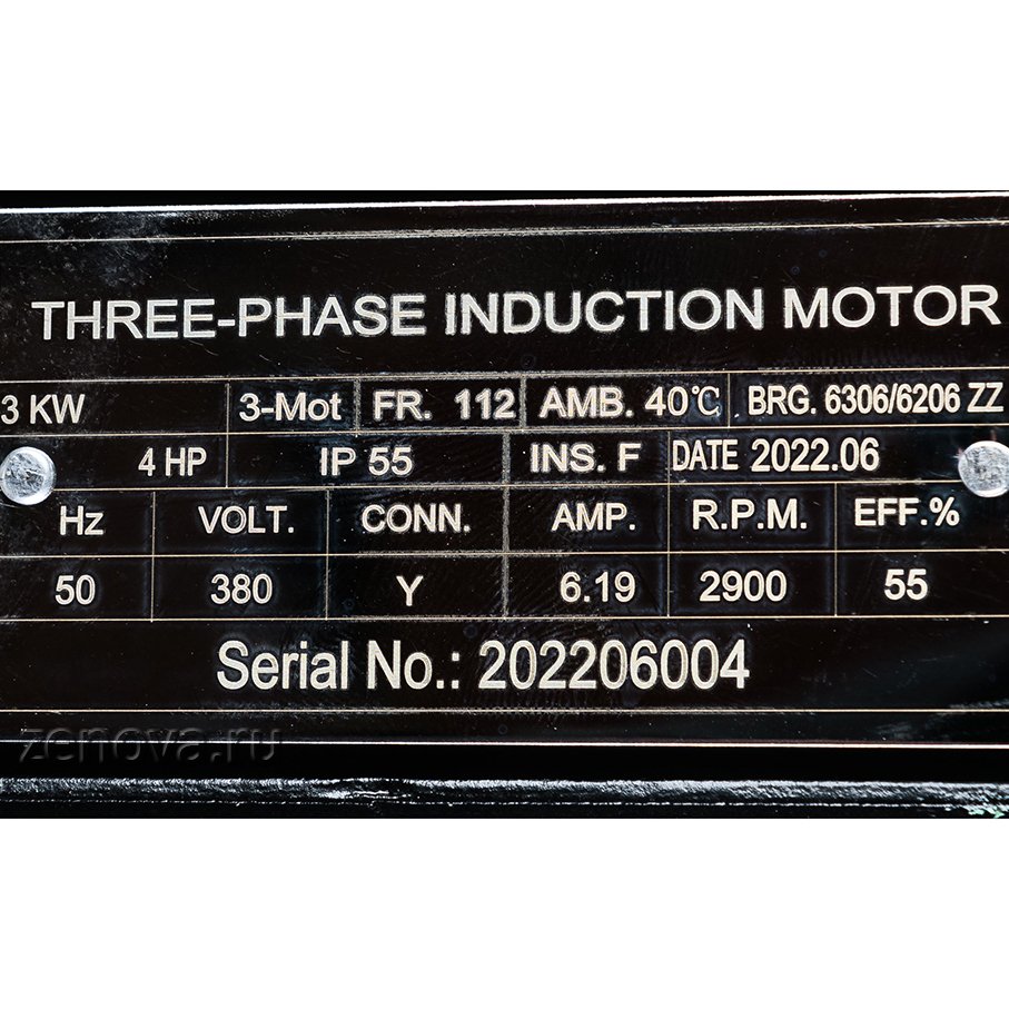 Насос оборудован трехфазным двигателем 380 В, 50 Гц, 2900 об/мин, номинальная мощность двигателя 3 кВт.