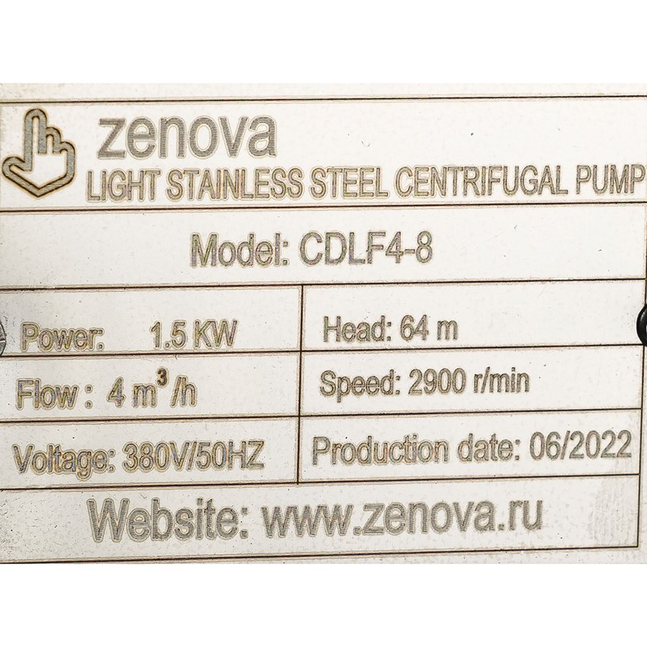 Насос Zenova CDLF 4-8 - вертикальный многоступенчатый насос высокого давления, который производится на современном заводе в Китае и продается в России под нашей собственной маркой Zenova. Насос имеет 8 рабочих ступеней. Патрубки насоса одинакового диаметра 32 мм, расположены на одной линии. Голова насоса выполнена из чугуна, внутренние части, контактирующие с водой, изготовлены из нержавеющей стали AISI 304. Модель предназначена для перекачивания чистой жидкости без твердых частиц, подходящей для нержавеющей стали.