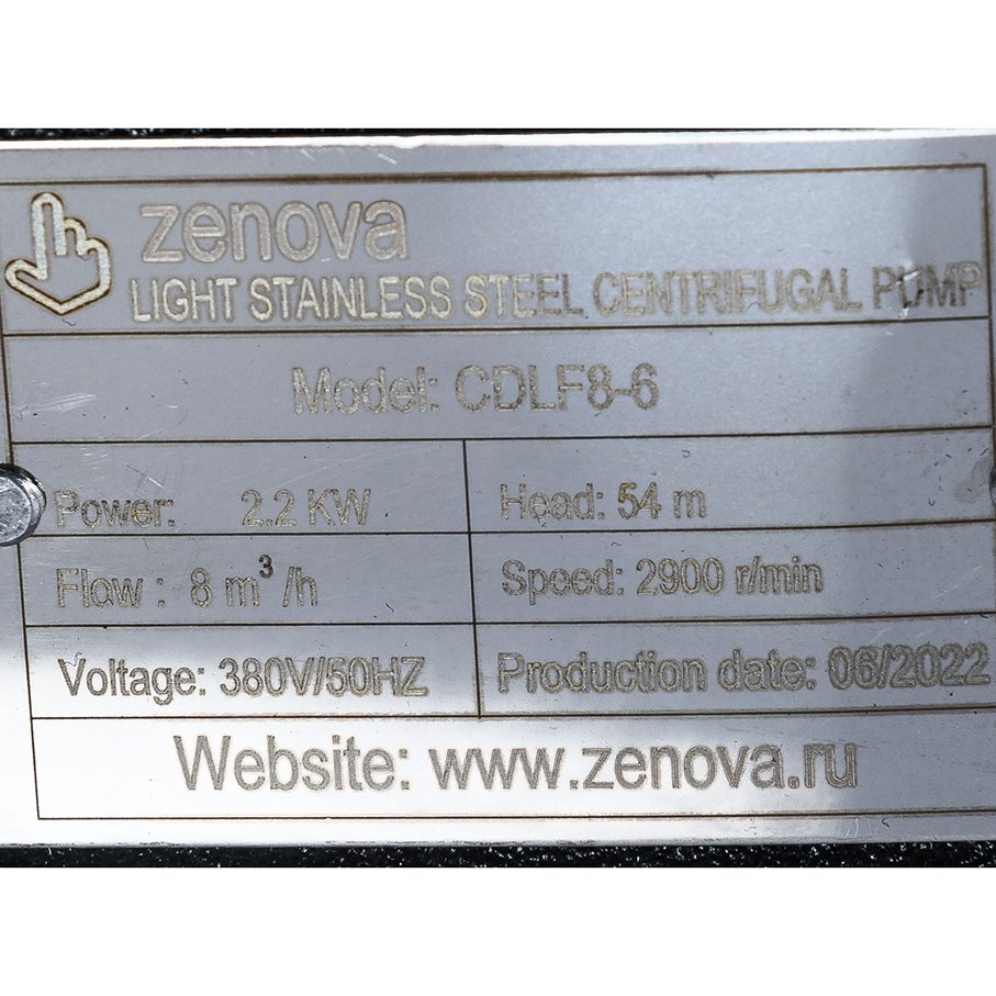 Насос Zenova CDLF 8-6 - вертикальный многоступенчатый насос высокого давления, который производится на современном заводе в Китае и продается в России под нашей собственной маркой Zenova. Насос имеет 6 рабочих ступеней. Патрубки насоса одинакового диаметра 40 мм, расположены на одной линии. Голова насоса выполнена из чугуна, внутренние части, контактирующие с водой, изготовлены из нержавеющей стали AISI 304. Модель предназначена для перекачивания чистой жидкости без твердых частиц, подходящей для нержавеющей стали.